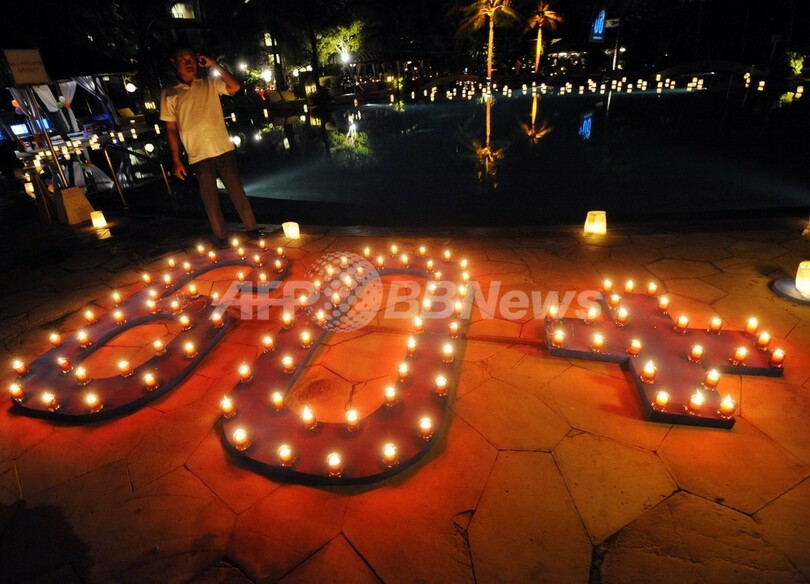 アースアワーはオーストラリア・シドニー(Sydney)で2007年に始まった。主催者によると今年は初参加のパレスチナ自治区、チュニジア、スリナム、ルワンダなど150を超える国と地域でアースアワーへの参加が表明された。(c)AFP