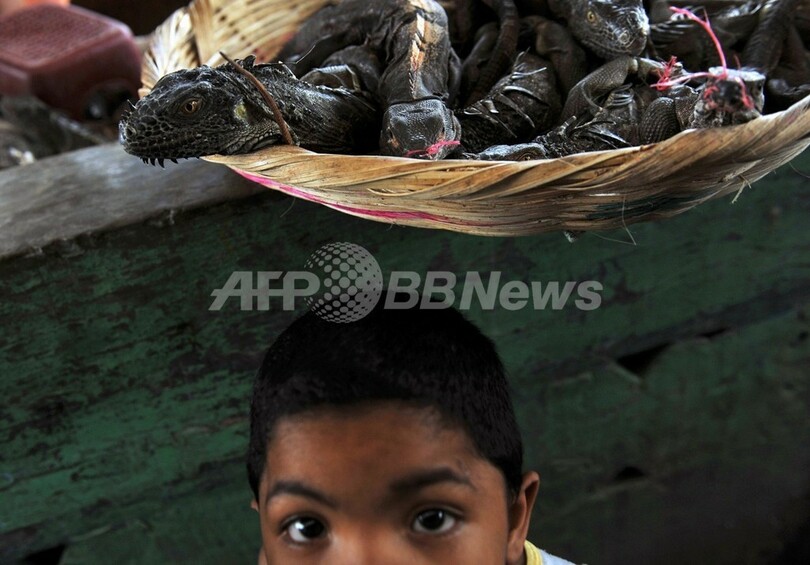 スペイン語でガロボ(garrobo)と呼ばれているイグアナを市場で2匹調達したマヌエル・サモラ(Manuel Zamora)さんは「(イグアナは)本当においしい。これは伝統料理だ」と熱っぽく語った。イグアナの肉と卵を、ひいて焼いたコーンミールや野菜と一緒に煮込んだスープは広く好まれている。