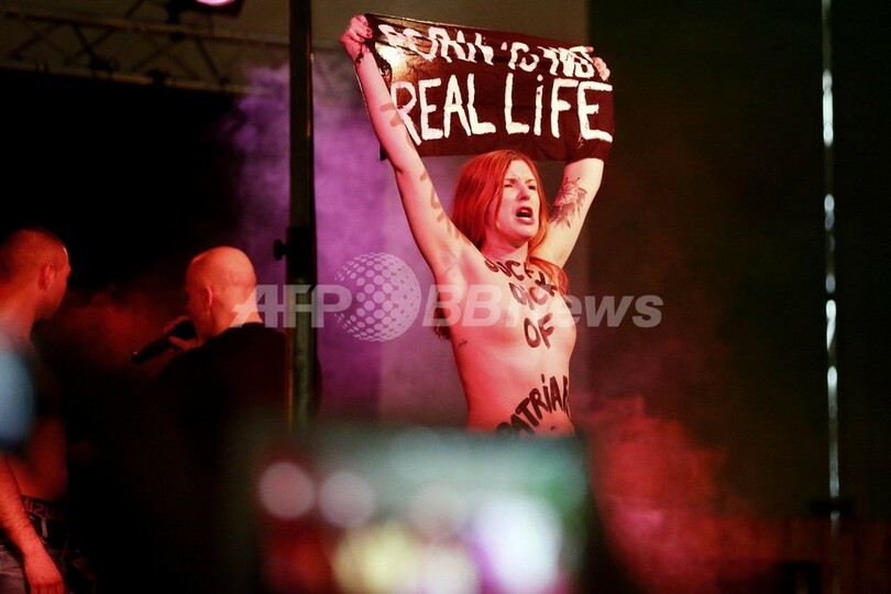 トップレスでポルノ産業に抗議、女性権利団体FEMEN