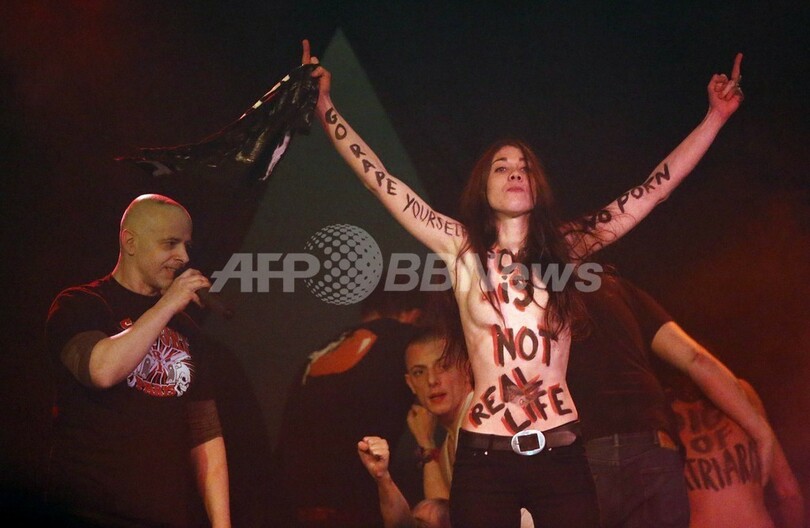 トップレスでポルノ産業に抗議、女性権利団体FEMEN