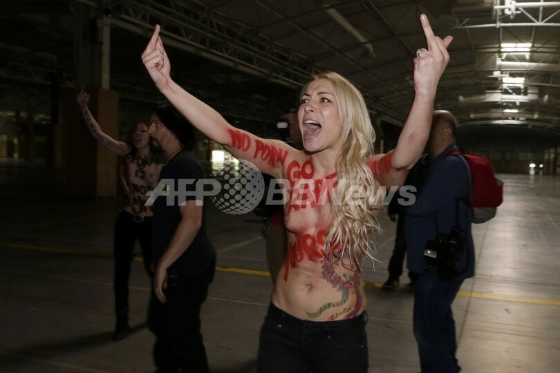 トップレスでポルノ産業に抗議、女性権利団体FEMEN