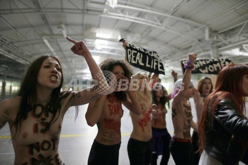 トップレスでポルノ産業に抗議、女性権利団体FEMEN