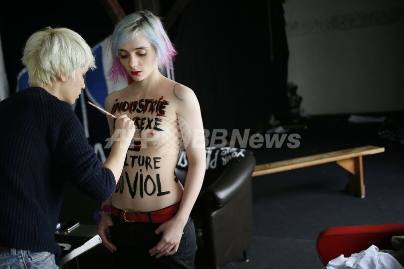トップレスでポルノ産業に抗議、女性権利団体FEMEN