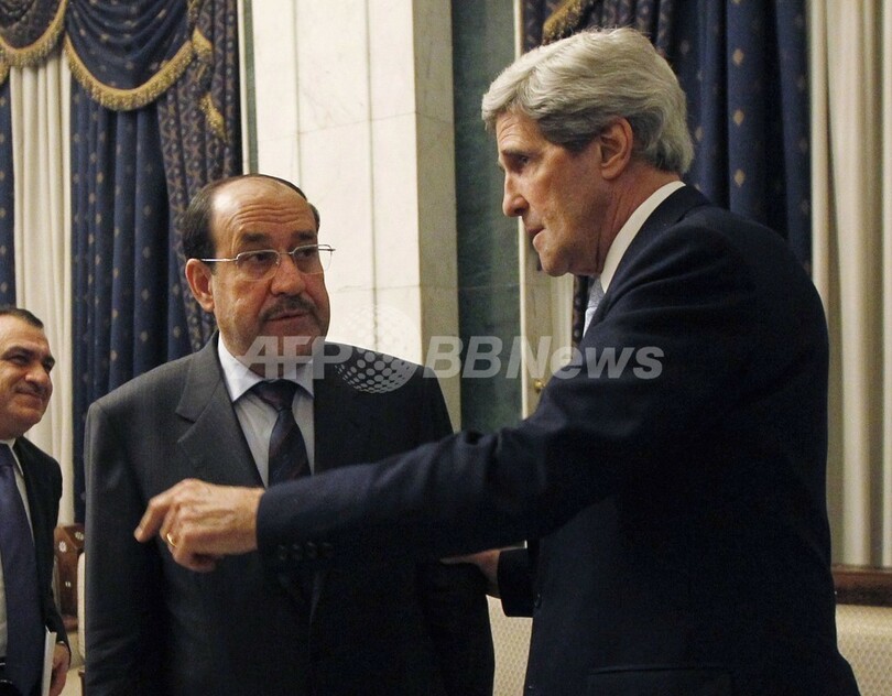 ケリー長官はバグダッド(Baghdad)でイラクのヌーリ・マリキ(Nuri al-Maliki)首相と会談した後、「イラン機のイラク領空通過がシリアのバッシャール・アサド(Bashar al-Assad)政権の存続を助けていることを、(マリキ)首相に明確に指摘した」と記者団に語った。ケリー長官はまた、米政府は「イラクの行動を監視している」とマリキ首相に警告したという。
