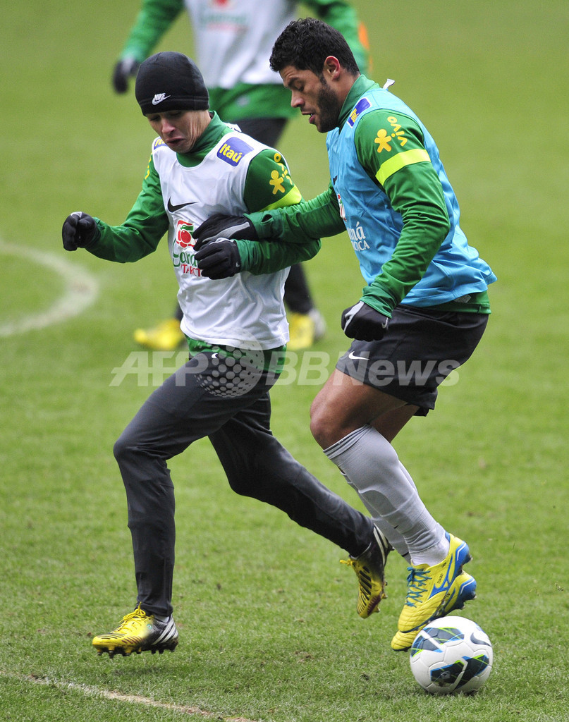 練習に臨むブラジルのフッキ(Hulk、2013年3月12日撮影)。(c)AFP/GLYN KIRK