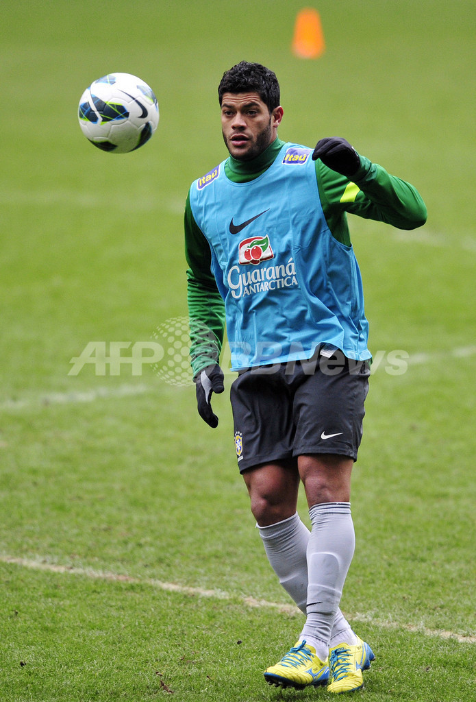 練習に臨むブラジルのフッキ(Hulk、2013年3月12日撮影)。(c)AFP/GLYN KIRK