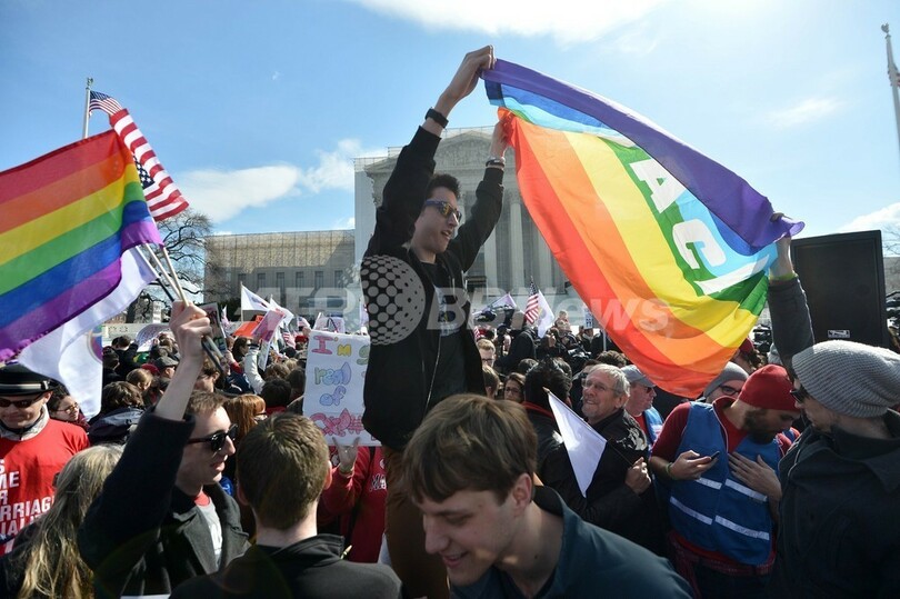 【3月 28日 AFP】米連邦最高裁は、同性婚の是非を問う審理2日目の27日、結婚は男女間のものに限ると定義した連邦法「結婚防衛法(Defense of Marriage Act、DOMA)」の合憲性について審理した。9人の判事のうち5人が同法は違憲という判断に傾いているもようだ。