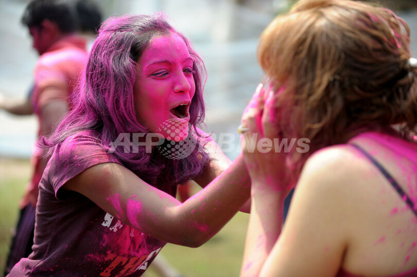 【3月28日 AFP】(写真追加)インド各地では27日、ヒンズー教の春の祭典「ホーリー(Holi)」を迎え、人々が互いにカラフルな粉や水を掛け合って春の訪れを祝った。「色祭り(Festival of Colours)」の異名でも知られるホーリーは、インド暦11月の最後の満月の日に行われ、今年は27日がその日にあたる。(c)AFP