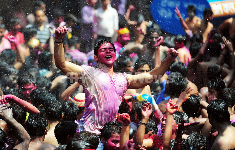 【3月28日 AFP】(写真追加)インド各地では27日、ヒンズー教の春の祭典「ホーリー(Holi)」を迎え、人々が互いにカラフルな粉や水を掛け合って春の訪れを祝った。「色祭り(Festival of Colours)」の異名でも知られるホーリーは、インド暦11月の最後の満月の日に行われ、今年は27日がその日にあたる。(c)AFP