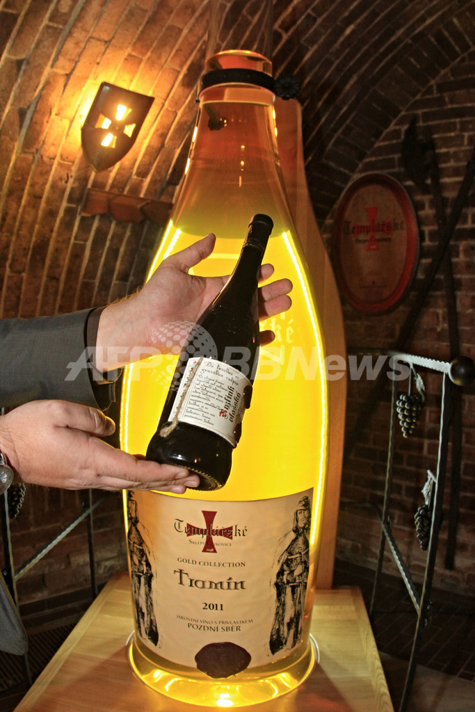 【3月29日 AFP】チェコ共和国(Czech Repubic)南部のチェイコヴィツェ(Cejkovice)で28日、高さ2メートル超、容量200リットルの巨大なワインボトルが、「国内最大のワインボトル」としてチェコ・ギネスブック(Czech Guinness Book of Records)の記録管理部に登録された。(c)AFP