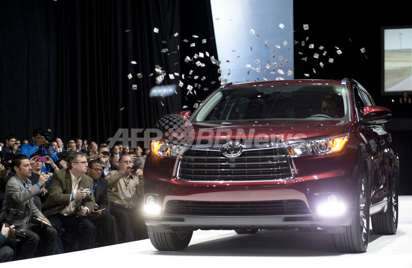 写真は、トヨタ自動車(Toyota Motor)が発表した新型SUV「ハイランダー(Highlander)」(2013年3月27日撮影)。(c)AFP/Don Emmert