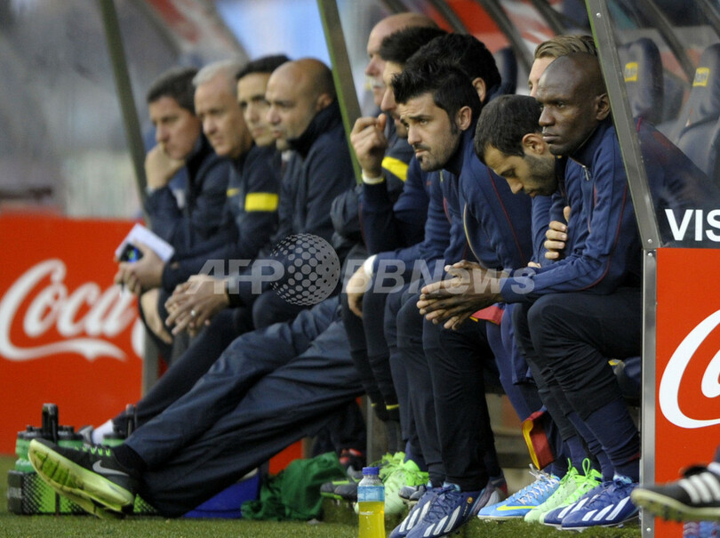 ベンチから試合を見守るFCバルセロナのエリック・アビダル(Eric Abidal、右、2013年3月30日撮影)。(c)AFP/MIGUEL RIOPA