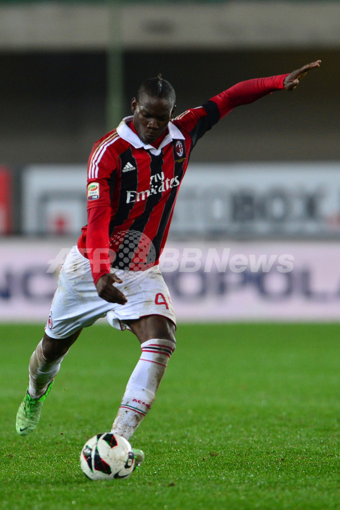 ボールを蹴り出すACミランのマリオ・バロテッリ(Mario Balotelli、2013年3月30日撮影)。(c)AFP/GIUSEPPE CACACE