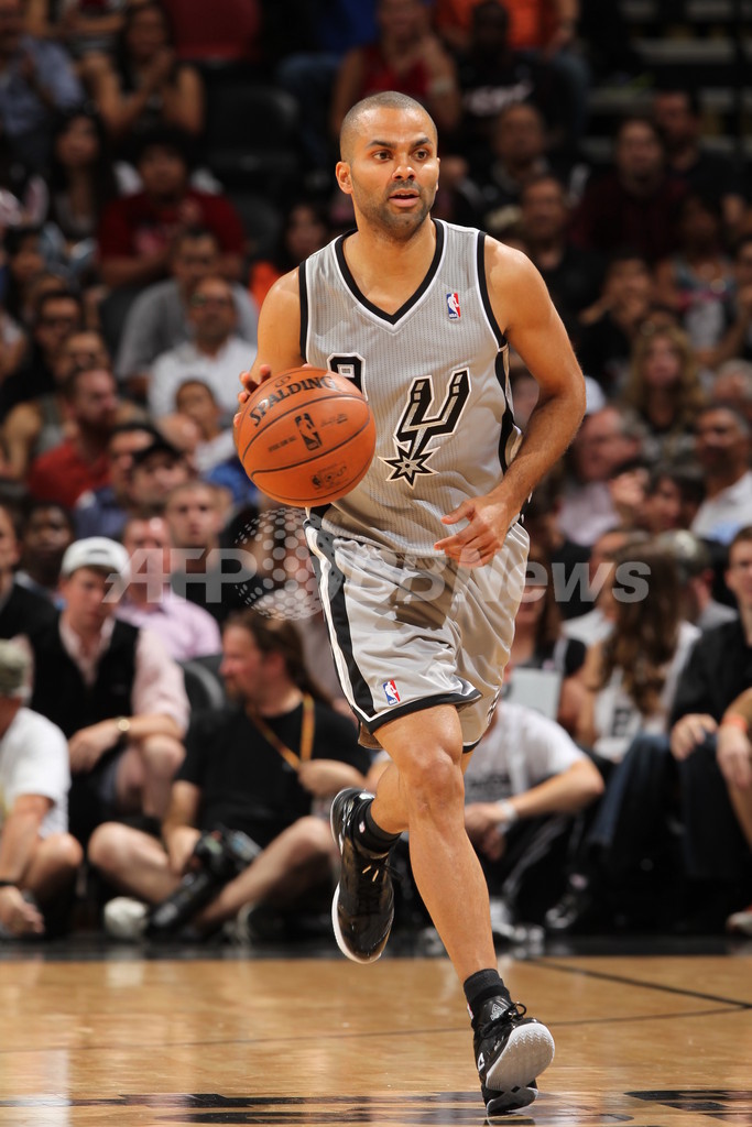 ボールをドリブルで運ぶサンアントニオ・スパーズのトニー・パーカー(Tony Parker、2013年3月31日撮影)。(c)AFP/Getty Images/NBAE/Joe Murphy