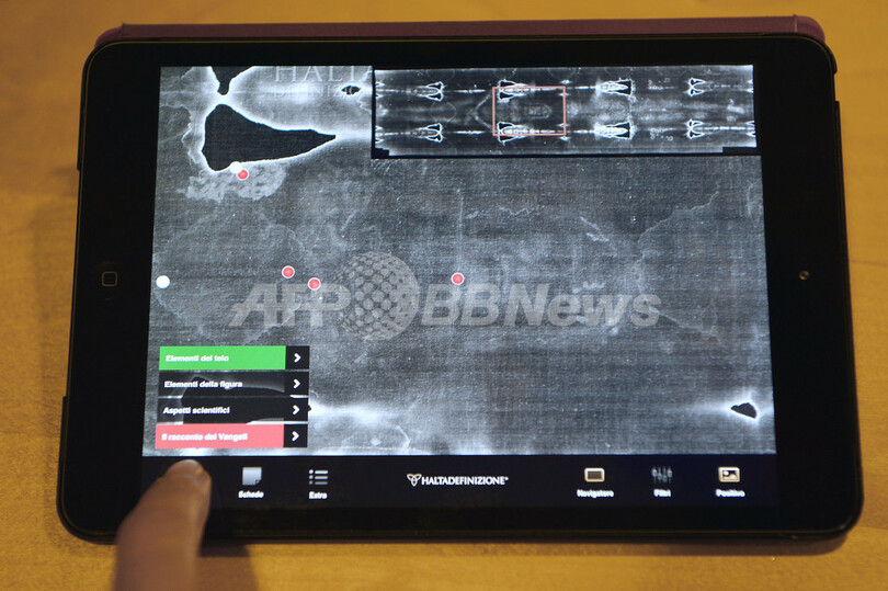 キリストが処刑されたとされる「聖金曜日(Good Friday)」に公開されたこのアプリでは、カトリック教会トリノ司教区と、聖骸布を研究するインターナショナル・センター・オブ・シンドノロジー(International Center of Sindonology)による科学的・技術的な解説とともに聖骸布の詳細を知ることができる。(c)AFP