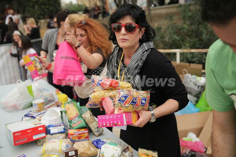 参加者は、日々の生活に苦しむ家族のための乾燥食品を持ち寄ることになっている。経済危機にあえぐキプロス政府は、国際機関が救済措置の見返りとして要求していた厳しい条件をのむことを余儀なくされた。