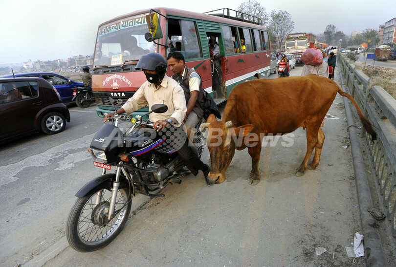 【4月4日 AFP】国民の大多数がヒンズー教徒のネパールの首都カトマンズ(Kathmandu)で、神聖視されているウシたちが、むしろ交通事故や渋滞の原因となっているとして、警察が路上のウシの「取り締まり」対策に乗り出した。