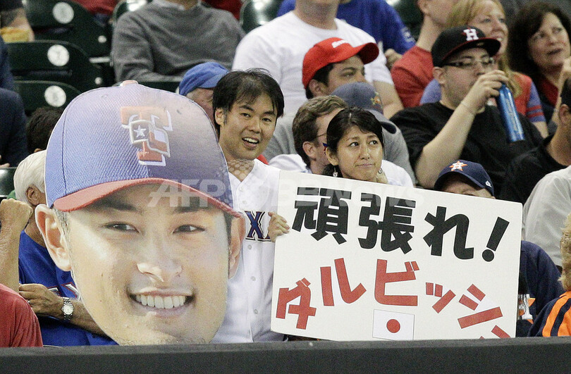 テキサス・レンジャーズのダルビッシュ有に声援を送るファン(2013年4月2日撮影)。(c)AFP/Getty Images/Bob Levey