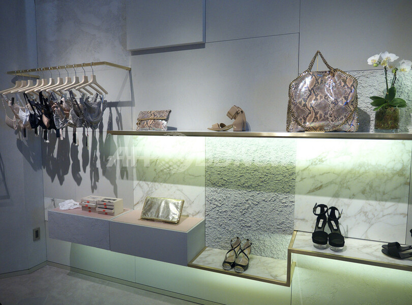 今年で開業10周年を迎える六本木ヒルズのリニューアルにともなってオープンする同店は、2008年に誕生した青山店に続く都内2店舗目の出店となる。シャープな感覚と女性らしさを併せ持つ「ステラ マッカートニー」の世界観を表現したショップは、セラミックや大理石を用いた壁、ピンクやグレーのオークを寄木張りした床などこだわりが詰まった空間だ。レディトゥウェアやアクセサリーをはじめ、ランジェリー、アイウェアやフレグランスなどフルラインアップを取り揃える。また店内の一角では、お洒落ママに人気の高いキッズコレクションも展開する。