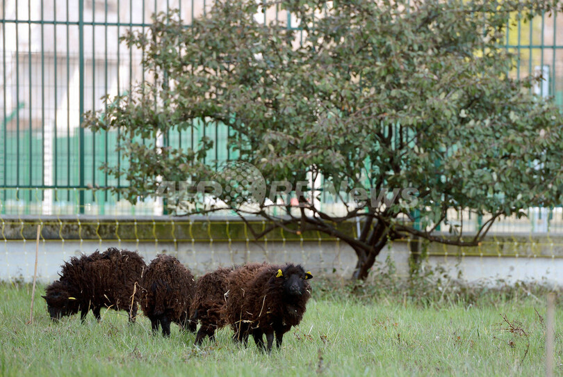 芝刈り機に代えてヒツジ4匹導入、パリ公文書館