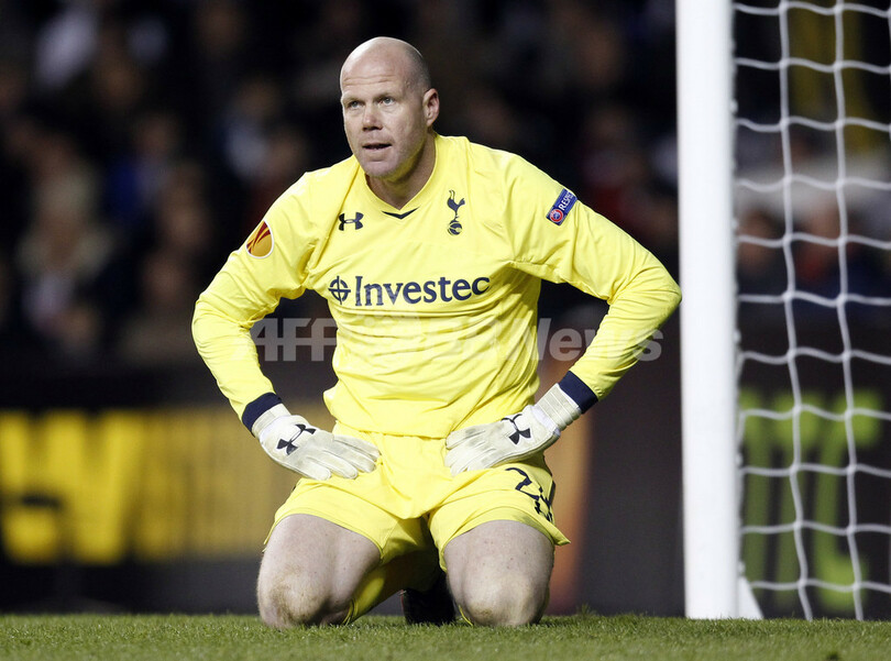 前半34分に2失点目を喫し落胆するトッテナム・ホットスパーのGKブラッド・フリーデル(Brad Friedel、2013年4月4日撮影)。(c)AFP/IAN KINGTON