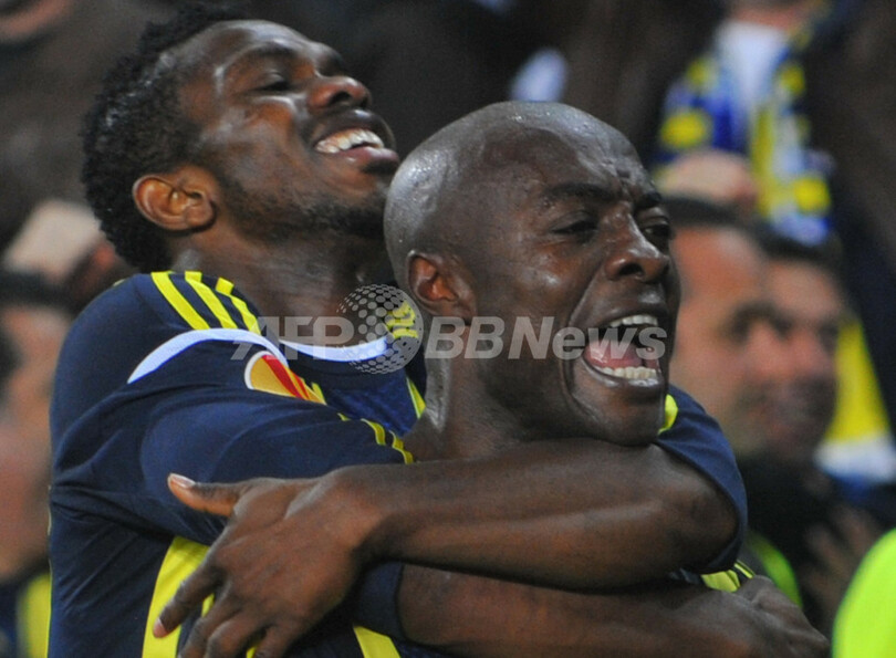 フェネルバフチェは後半33分にアチール・ピエール・ウェボ(Achille Pierre Webo)のPKで先制すると、試合終了間際にはディルク・カイト(Dirk Kuyt)が追加点を挙げ、準決勝進出へ優位に立った。(c)AFP