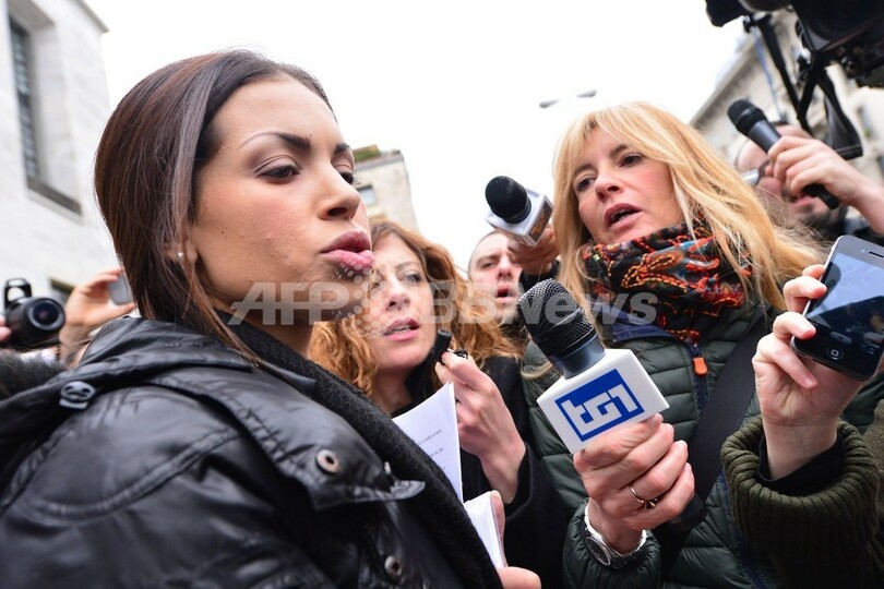 【4月5日 AFP】イタリアのシルビオ・ベルルスコーニ(Silvio Berlusconi)前首相(76)が未成年買春の罪などに問われている裁判の公判が開かれている伊ミラノ(Milan)の裁判所前で4日、前首相の相手とされている当時17歳だった女性が、証言する機会が欲しいと訴え抗議を行った。