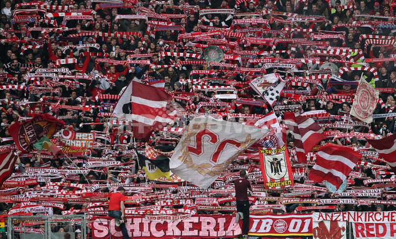声援を送るバイエルン・ミュンヘンのサポーター(2013年4月6日撮影)。(c)AFP/DANIEL ROLAND