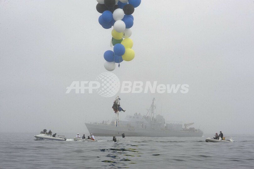 リハーサルは行わず、6日の朝から160個の風船にガスを入れたが、離陸前にいくつかは割れた。ウエットスーツに身を包んだシルバーバランスさんは、海面から数メートルの高さに浮かび、水を詰めた袋や、エアガン、風船を割るためのやり代わりの棒などを使って「操縦」し、約6キロ先の対岸を目指した。