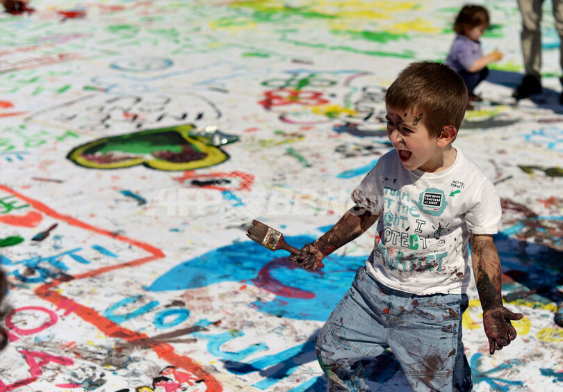【4月8日 AFP】イタリア・ローマ(Rome)のポポロ広場(Piazza del Popolo)で7日、市の文化協会「キッチン・アート(Kitchen Art)」主催のイベント「家族にとって良いことは、国にとっても良いこと」が開催された。広場に広げられた巨大なキャンバスに多くの子どもたちが筆を走らせた。このイベントは、ローマを家庭に優しい都市にすることを目的にしている。(c)AFP