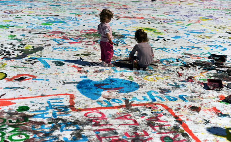 【4月8日 AFP】イタリア・ローマ(Rome)のポポロ広場(Piazza del Popolo)で7日、市の文化協会「キッチン・アート(Kitchen Art)」主催のイベント「家族にとって良いことは、国にとっても良いこと」が開催された。広場に広げられた巨大なキャンバスに多くの子どもたちが筆を走らせた。このイベントは、ローマを家庭に優しい都市にすることを目的にしている。(c)AFP