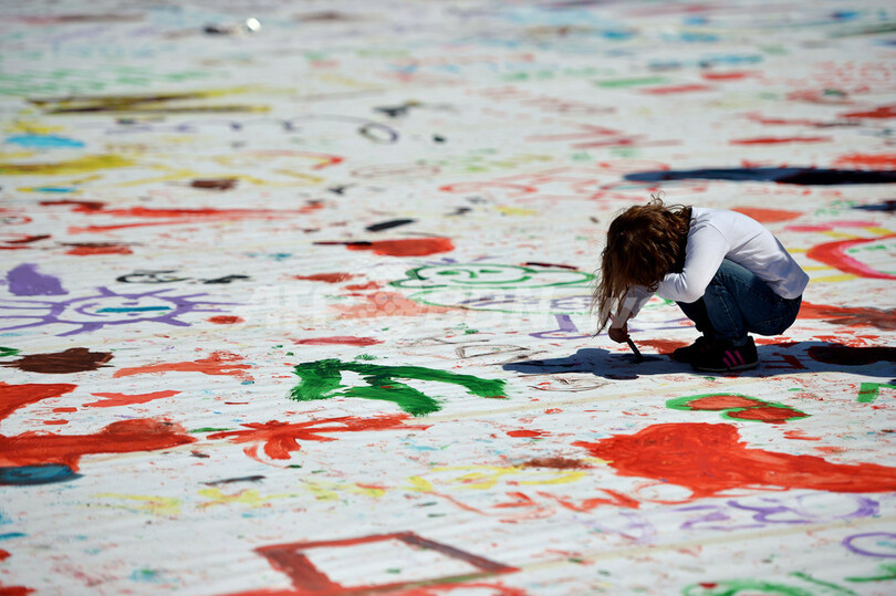 【4月8日 AFP】イタリア・ローマ(Rome)のポポロ広場(Piazza del Popolo)で7日、市の文化協会「キッチン・アート(Kitchen Art)」主催のイベント「家族にとって良いことは、国にとっても良いこと」が開催された。広場に広げられた巨大なキャンバスに多くの子どもたちが筆を走らせた。このイベントは、ローマを家庭に優しい都市にすることを目的にしている。(c)AFP