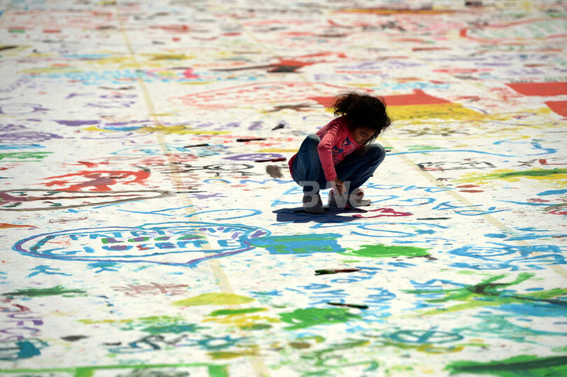【4月8日 AFP】イタリア・ローマ(Rome)のポポロ広場(Piazza del Popolo)で7日、市の文化協会「キッチン・アート(Kitchen Art)」主催のイベント「家族にとって良いことは、国にとっても良いこと」が開催された。広場に広げられた巨大なキャンバスに多くの子どもたちが筆を走らせた。このイベントは、ローマを家庭に優しい都市にすることを目的にしている。(c)AFP