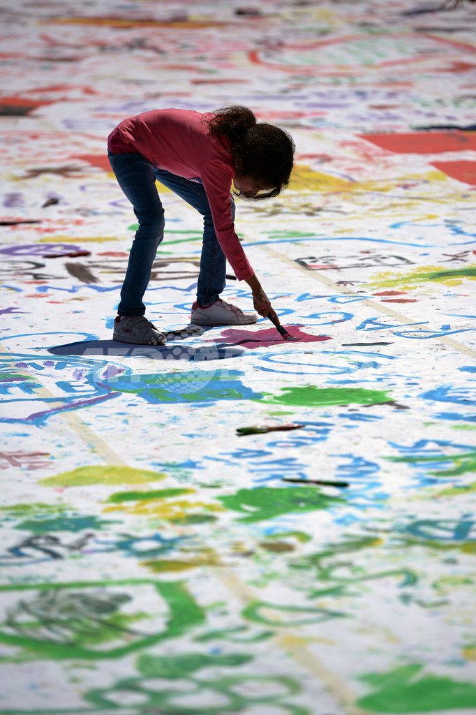 【4月8日 AFP】イタリア・ローマ(Rome)のポポロ広場(Piazza del Popolo)で7日、市の文化協会「キッチン・アート(Kitchen Art)」主催のイベント「家族にとって良いことは、国にとっても良いこと」が開催された。広場に広げられた巨大なキャンバスに多くの子どもたちが筆を走らせた。このイベントは、ローマを家庭に優しい都市にすることを目的にしている。(c)AFP