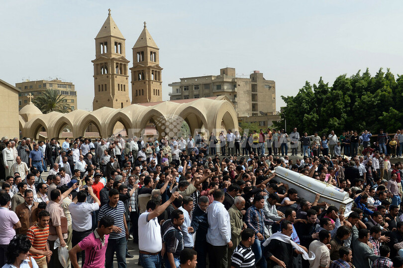エジプトの8300万人近い全人口のうち、キリスト教徒は6~10%。2011年2月にホスニ・ムバラク(Hosni Mubarak)大統領が退陣して以降、コプト教徒とイスラム教徒はたびたび衝突しており、これまでにキリスト教徒を中心に約50人が死亡している。(c)AFP
