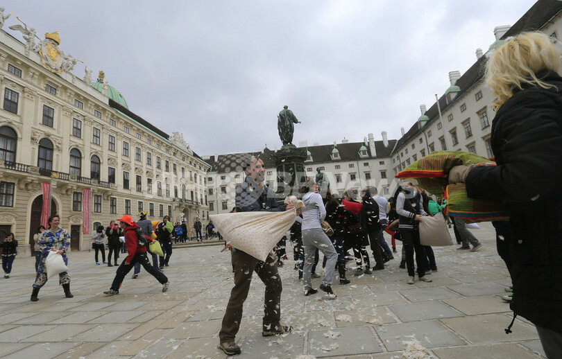 【4月8日 AFP】「国際ピローファイト・デー(International Pillow Fight Day)」の6日、ロンドン(London)やオーストリア首都ウィーン(Vienna)で、枕でたたき合って戦う「ピローファイト」のイベントが行われた。(c)AFP