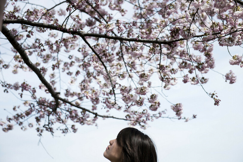 【4月8日 AFP】米ワシントンD.C.(Washington D.C.)の国立公園ナショナルモール(National Mall)では、遅い春の訪れとともに桜が見ごろとなっている。公園内タイダルベイスン(Tidal Basin)には、1912年に旧東京市から友好の印として寄贈された桜もあり、多くの花見客を楽しませている。(c)AFP
