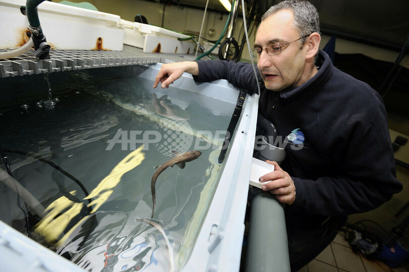 ニュース 環境・科学 ホシザメの赤ちゃん25匹誕生、仏水族館 2013年4月9日 14:57 発信地:フランス [ ヨーロッパ フランス ] このニュースをシェア ‹ › ❮ 3/12 ❯ 仏西部タルモン・サン・チレール(Talmont-Saint-Hilaire)の水族館で最近、ホシザメの赤ちゃん25匹が生まれた。大きさは20~30センチほど。この水族館では、漁師が捕えたホシザメの成体12匹を約1年前から飼育していた。写真は、水槽内を泳ぐホシザメの赤ちゃんを見る学芸員(2013年4月5日撮影)。(c)AFP/JEAN-SEBASTIEN EVRARD 画像作成中 ! 【4月9日】仏西部タルモン・サン・チレール(Talmont-Saint-Hilaire)の水族館で最近、ホシザメの赤ちゃん25匹が生まれた。大きさは20~30センチほど。この水族館では、漁師が捕えたホシザメの成体12匹を約1年前から飼育していた。(c)AFP 環境・科学 一覧へ> メディア・報道関係・法人の方向け 写真・動画 購入のお問合せ>