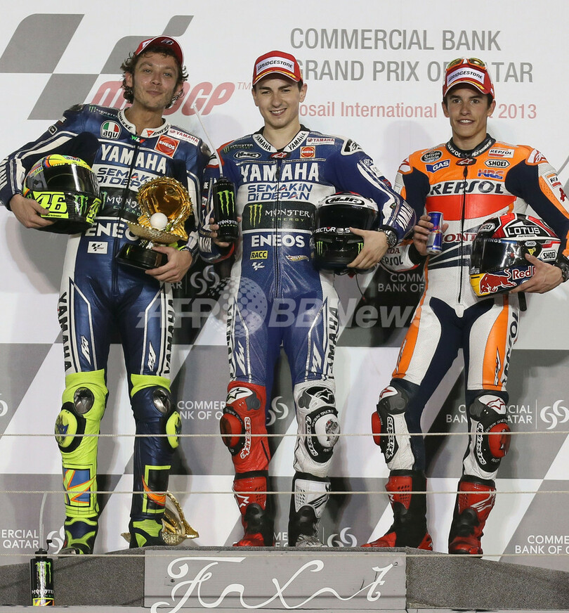 【4月8日 AFP】世界ロードレース選手権(WGP 2013)の2013年シーズン開幕戦カタールGPは7日、ドーハ(Doha)のロサイル・インターナショナル・サーキット(Losail International Circuit)でMotoGPクラスの決勝が行われ、2012年総合王者でヤマハ・ファクトリー(Yamaha Factory)のホルヘ・ロレンゾ(Jorge Lorenzo、スペイン)が42分39秒802で大会連覇を達成した。