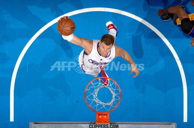 ダンクシュートを狙うクリッパーズのブレイク・グリフィン(Blake Griffin、2013年4月7日撮影)。(c)AFP/Getty Images/NBAE/Andrew D. Bernstein