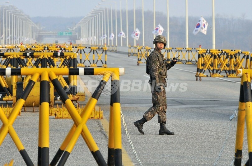 北朝鮮は3日以降、両国境界線から北朝鮮側に約10キロに位置する同団地に、韓国人の現場監督や労働者が境界線を越えて立ち入ることを禁じている。(c)AFP