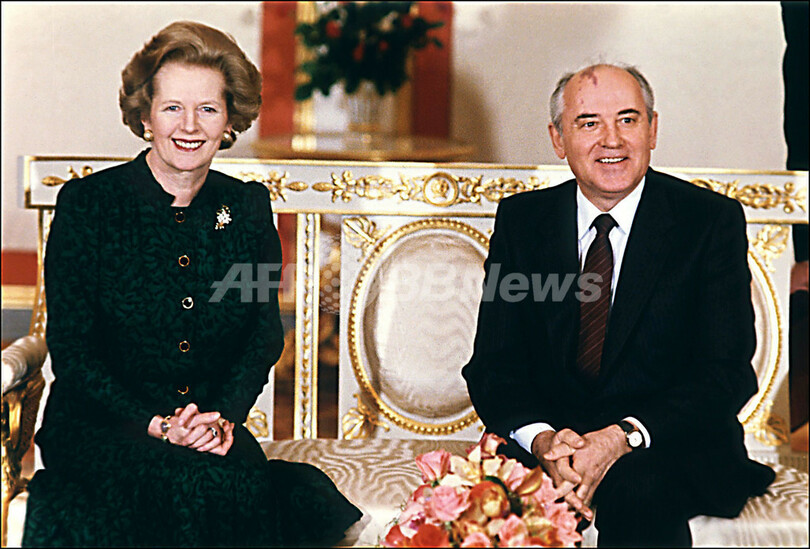 写真は、ソ連のモスクワ(Moscow)でミハイル・ゴルバチョフ(Mikhail Gorbachev)書記長(右)との会談に臨むサッチャー英首相(肩書きはいずれも当時、1987年3月30日撮影)。(c)AFP