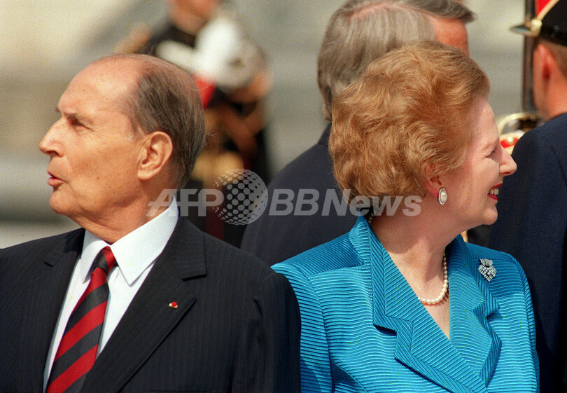 写真は、仏パリ(Paris)で開かれた主要7か国(G7)会議で、反対方向を向くフランソワ・ミッテラン(Francois Mitterrand)仏大統領(左)とサッチャー英首相(肩書きはいずれも当時、1989年7月14日撮影)。(c)AFP/JOEL ROBINE