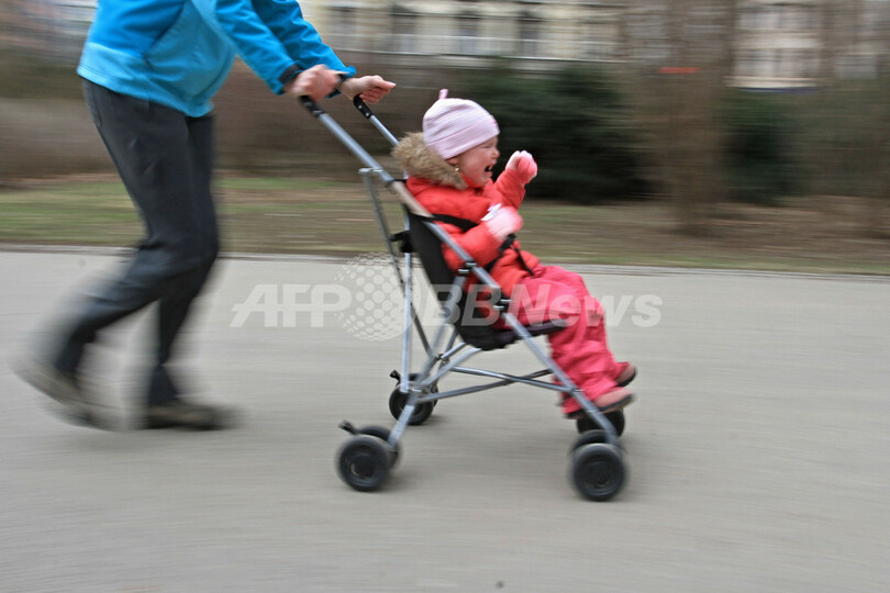 チェコ各地でベビーカーレース、泣き出す子どもも