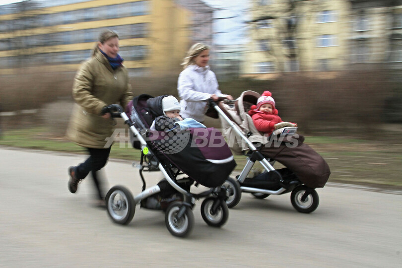 チェコ各地でベビーカーレース、泣き出す子どもも