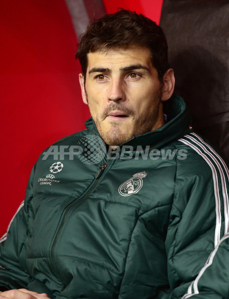 ベンチで戦況を見守るレアル・マドリードのイケル・カシージャス(Iker Casillas、2013年4月9日撮影)。(c)AFP/JAVIER SORIANO