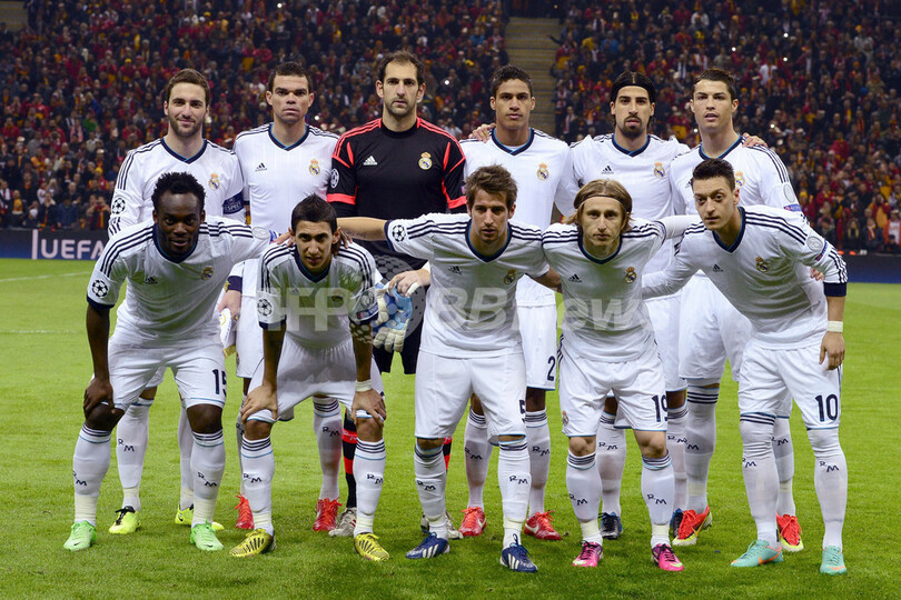 試合前の写真撮影に臨むレアル・マドリードの選手(2013年4月9日撮影)。(c)AFP/JAVIER SORIANO