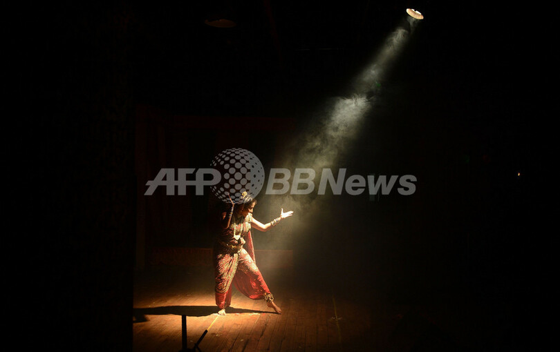 写真は、ステージでラバニを踊る女性(2013年4月8日撮影)。(c)AFP/PUNIT PARANJPE