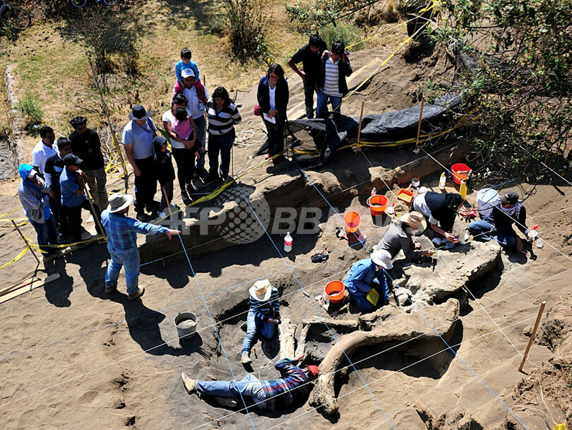 ニュース ライフ 1万年前のマンモスの骨、メキシコで発掘進む 2013年4月12日 13:50 発信地:サンタアナ・トラコテンコ/メキシコ [ 中南米 メキシコ ] このニュースをシェア ‹ › ❮ 2/2 ❯ メキシコ中部ミルパアルタ(Milpa Alta)のサンタアナ・トラコテンコ(Santa Ana Tlacotenco)でマンモスの骨を発掘する考古学者ら(2013年4月4日撮影、同9日公開)。(c)AFP/INAH 画像作成中 ! 【4月12日 AFP】メキシコの国立人類学歴史学研究所(INAH)は9日、中部ミルパアルタ(Milpa Alta)のサンタアナ・トラコテンコ(Santa Ana Tlacotenco)で発掘中のマンモスの骨の写真を公開した。骨は1万~1万2000万年前ごろのもので、発掘作業は7割まで進んでいるという。(c)AFP ライフ 一覧へ> メディア・報道関係・法人の方向け 写真・動画 購入のお問合せ>