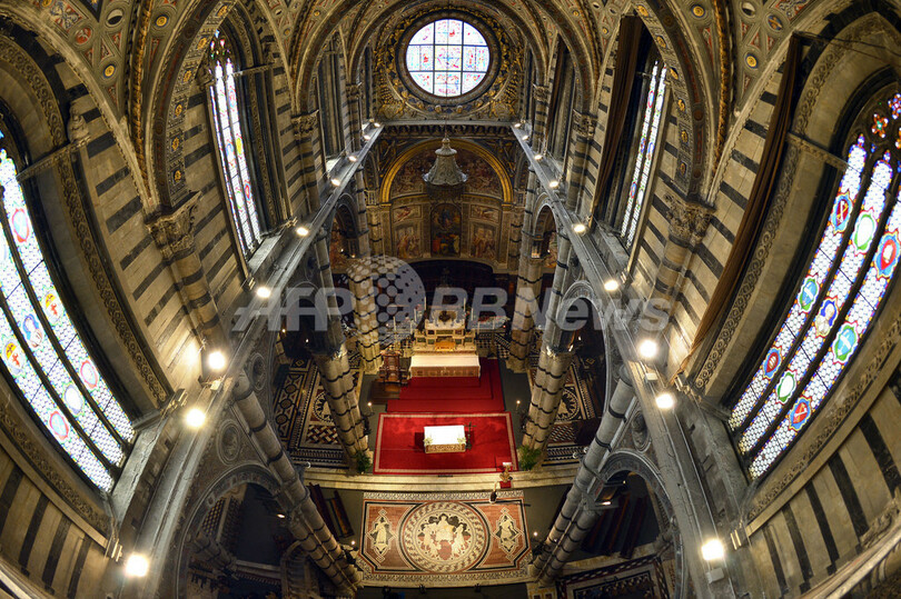 【4月16日 AFP】イタリア中部トスカーナ州のシエナ(Siena)にあるシエナ大聖堂で、これまで一般には非公開だった部屋をめぐるツアー「The Gate of Heaven(天国の門)」が今月6日から10月27日まで催行されるのに先立ち、5日に報道陣を対象に部屋が先行公開された。